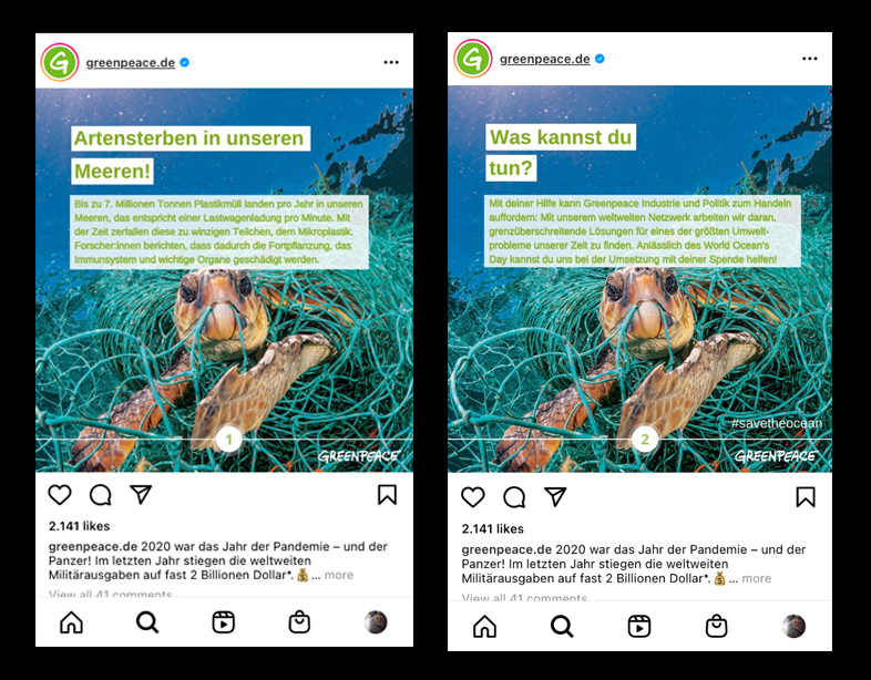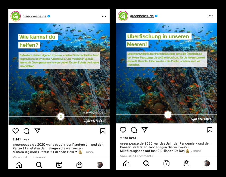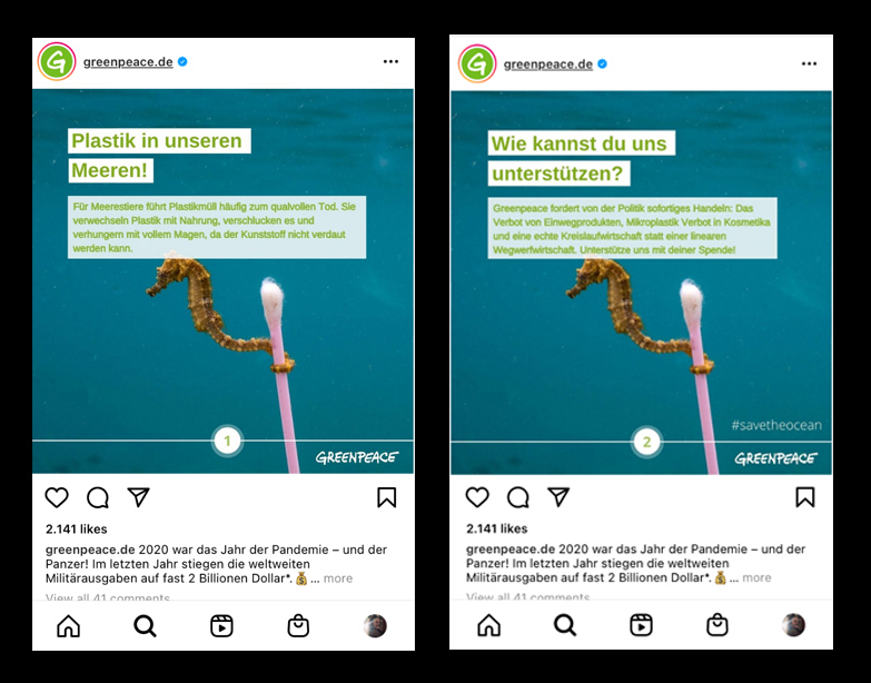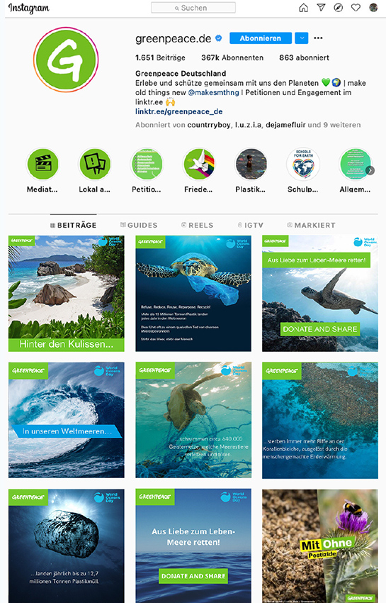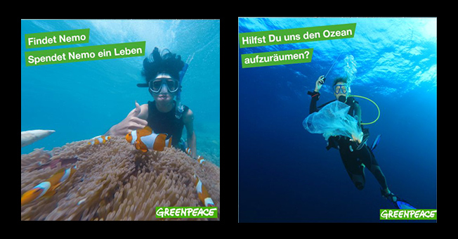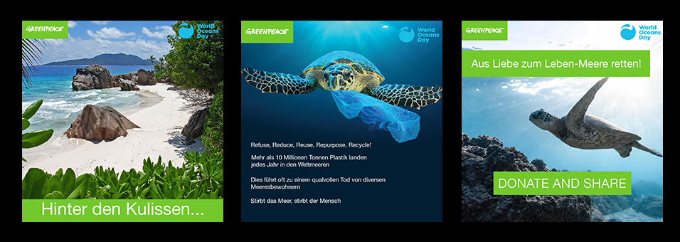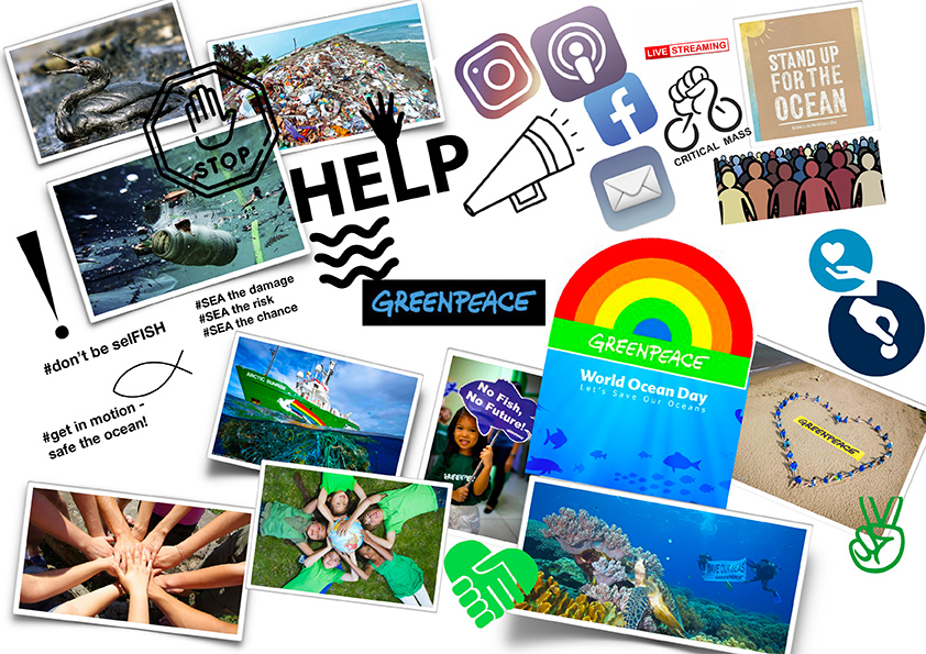 In der Einführungsübung 'Mediengestaltung in der angewandten Kommunikation' wurden Social-Media-Motive und Videos erarbeitet. Der Kooperationspartner Greenpeace Deutschland stellte den Studierenden das Briefing zum Thema 'World Ocean Day'.