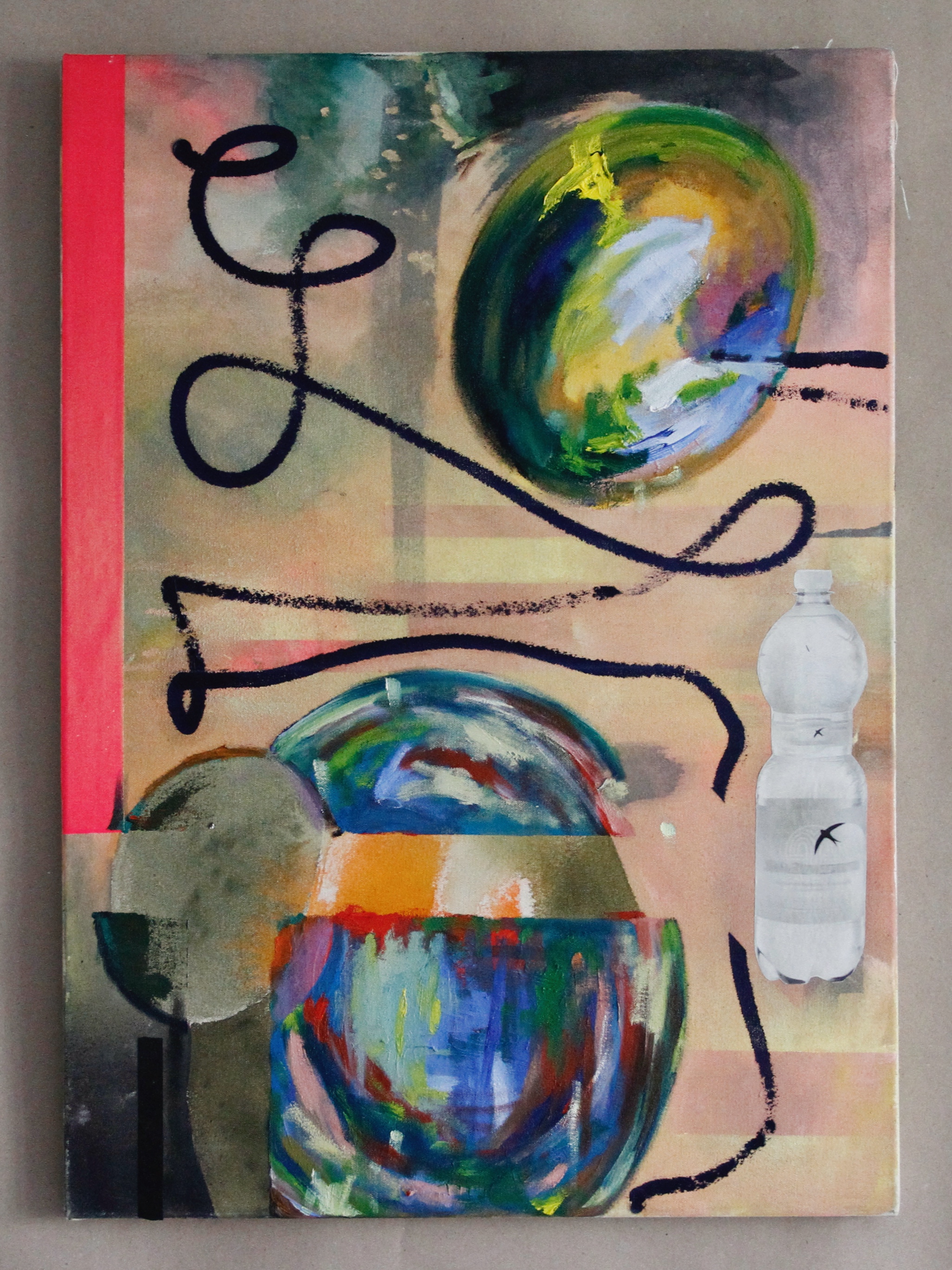 Sparkling Water 70 x 50 cm Acryl, Tape, Öl, Papier auf Leinwand 2021
